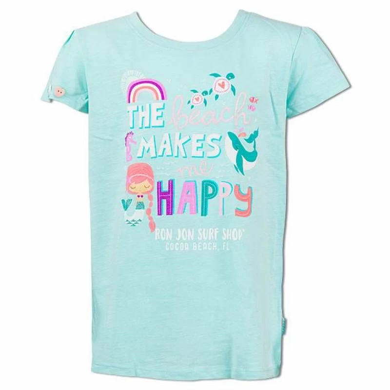 Earth Nymph and Ron Jon collaborated to bring you this girls top featuring a playful underwater scene and the words “The Beach Makes Me Happy”.