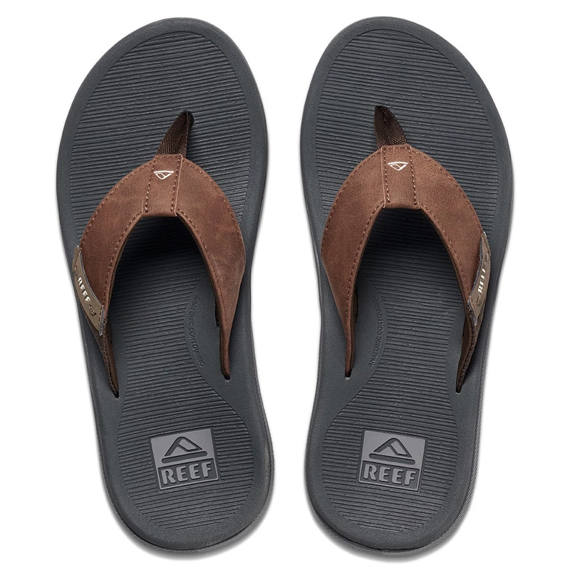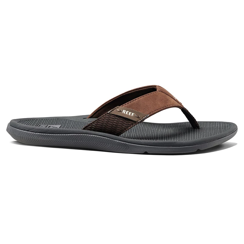 The Reef Mens Grey and Tan Santa Ana Sandal are perfect for the water lovers in your life. They feature water withstanding straps, arch support, and a textured footbed to provide traction.Â