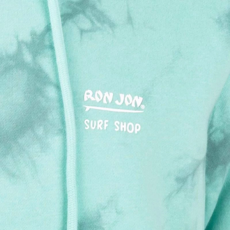 Ron Jon Ashbury Tie Dye Aruba Hoodie has a trendy aqua and grey tie dye all over print.