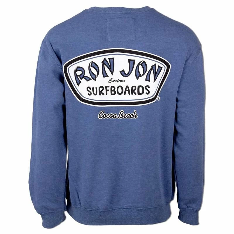 The Ron Jon Custom Surfboards Crew Neck Pullover features a large back logo screen print and smaller one on the front chest with Cocoa Beach lettering.
