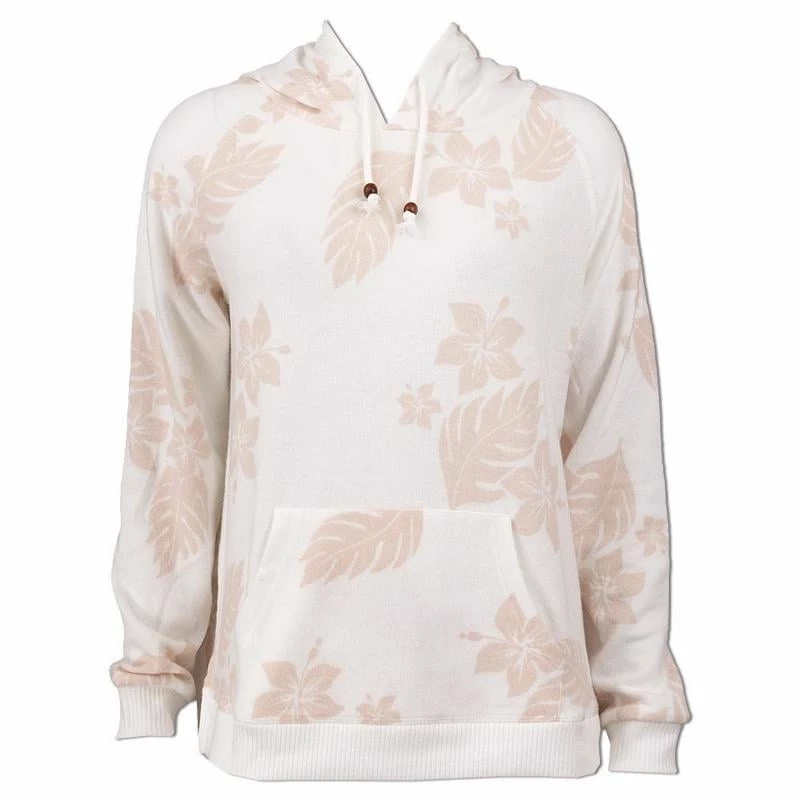 Wrap yourself up in the super soft fabric of the Ron Jon Juniors Aloa Print Hacci Hoodie. Pastel flowers and palm leaves decorate this pullover hoodie.