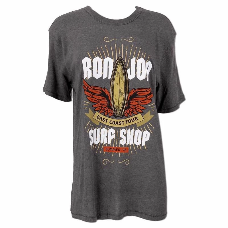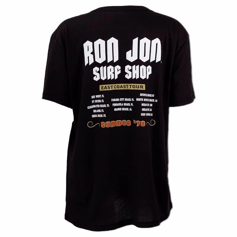 Featuring Summer ’78 and a surfboard with wings, the Ron Jon Surf Shop Juniors East Coast Tour Tee will take you on a trip down the coast. The back of the t-shirt lists our current physical store locations.