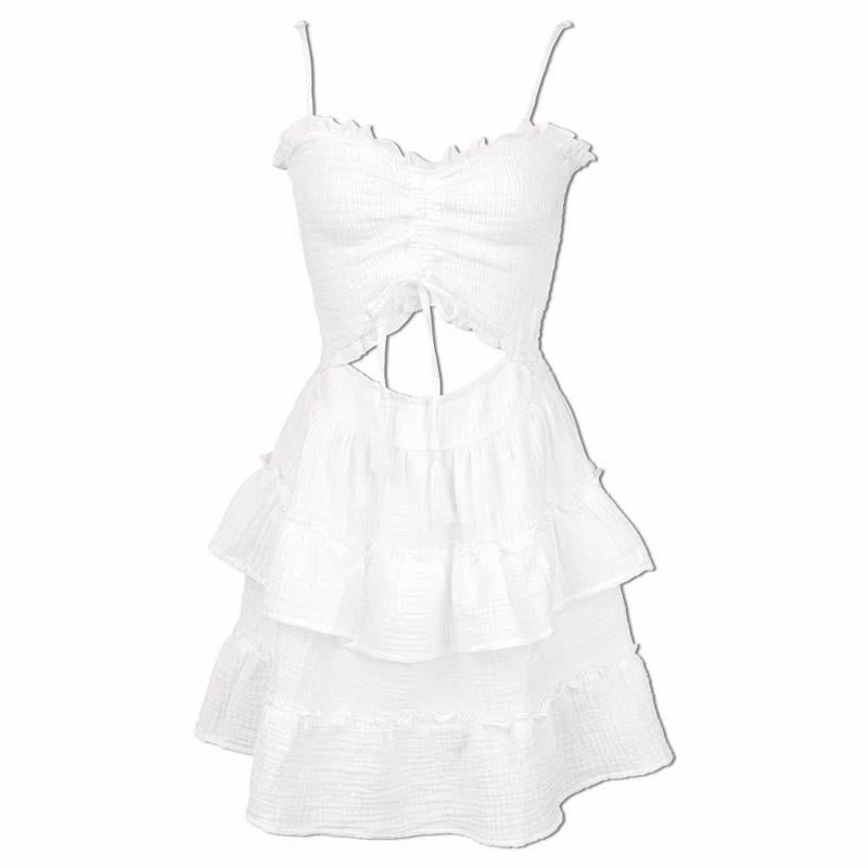 Perfect for sunny days, the Ron Jon Juniors Gauze Ruffle Dress features an adjustable smocked bust area and a tiered ruffle skirt.