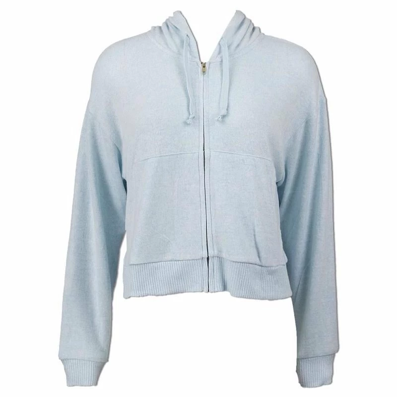 This super soft Ron Jon Juniors Hacci Zip Hoodie is a trendy, lightweight crop top style featuring front pockets.