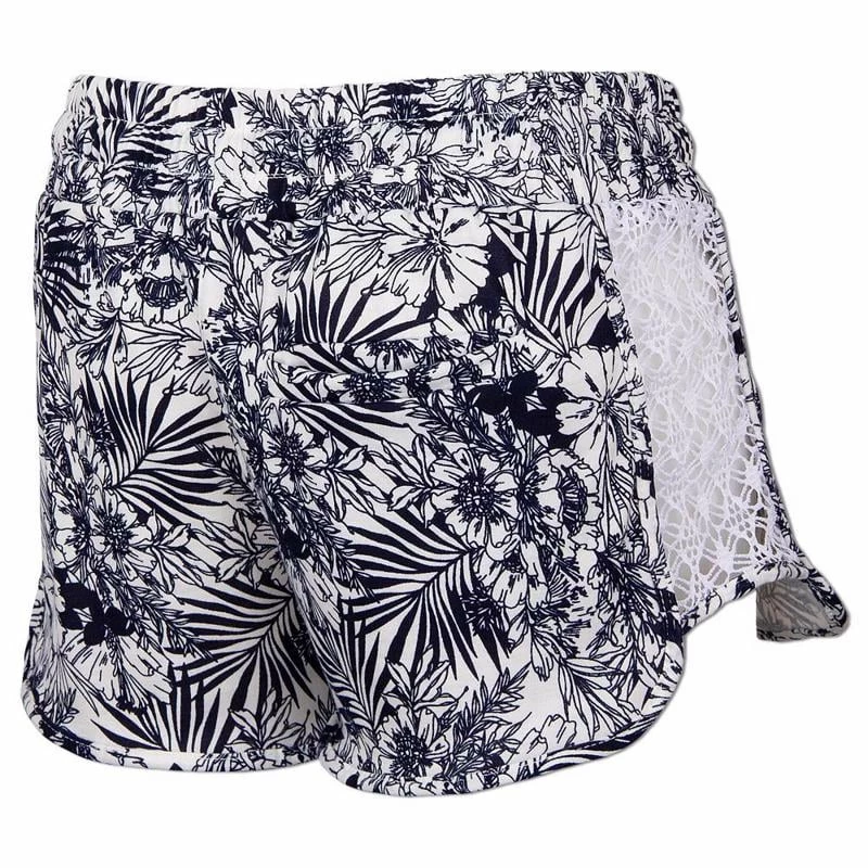 Trendy Ron Jon Juniors Lace Side Shorts are soft, sit on the hips and have a pretty floral print.