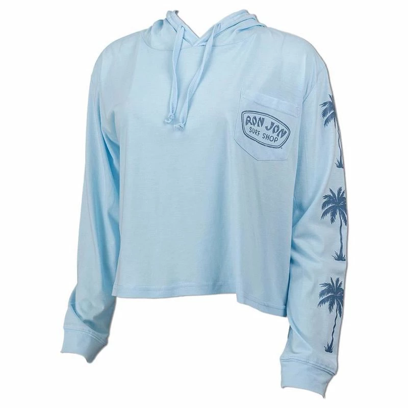 This lightweight, cropped, Palm tree print long sleeve tee for juniors is great for layering or as a cover-up for your bikini top.