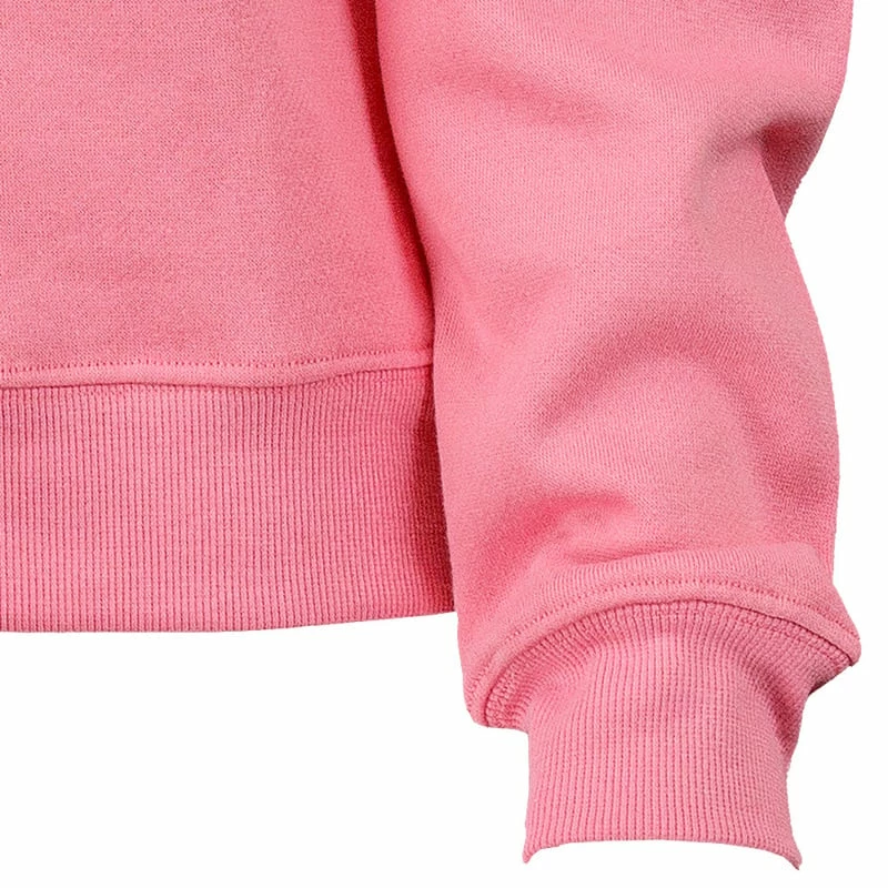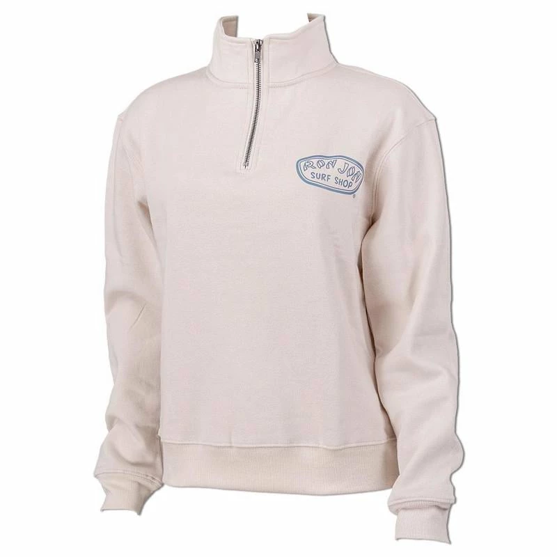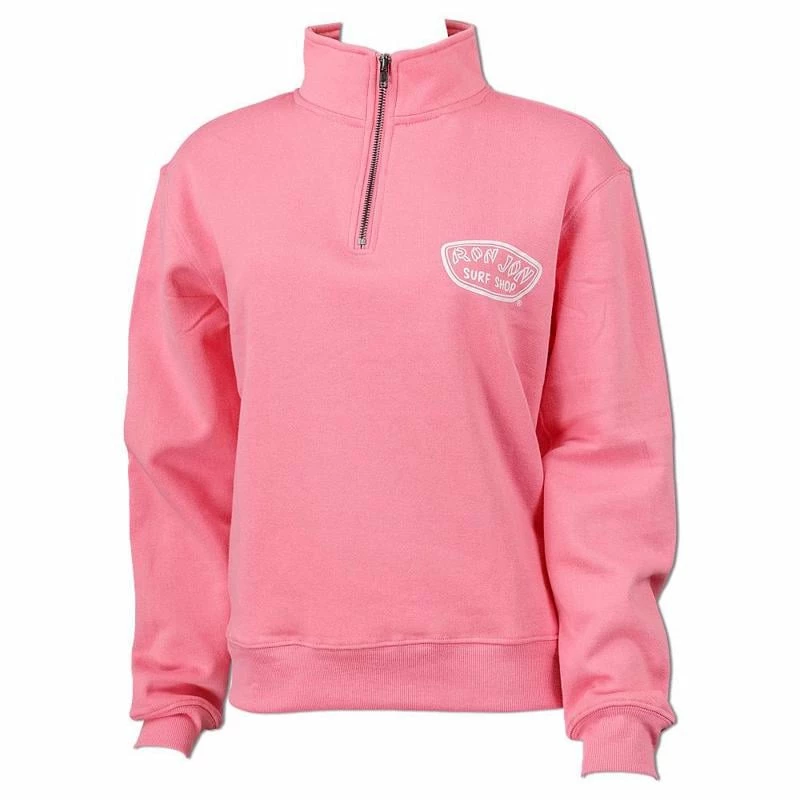Longer length crop beach sweatshirt from Ron Jon features a quarter zip neckline and screen print logo.