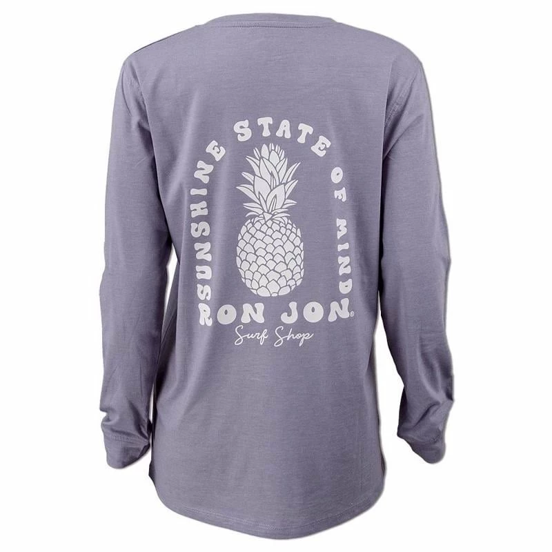 Ron Jon Juniors Sunshine Long Sleeve Tee comes with a pocket on the left chest area and features a pineapple design with the words “Sunshine State of Mind”.