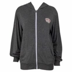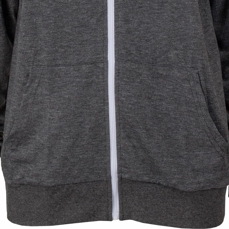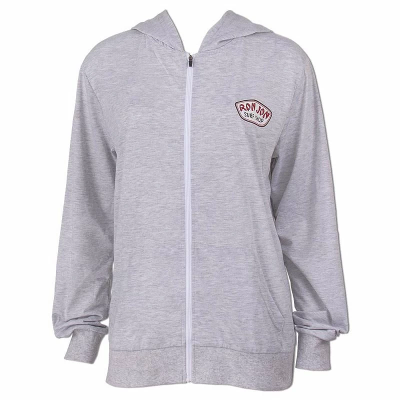 The Ron Jon Juniors Tri-blend Badge Lightweight Zip Hoodie is a great option for someone who is always a tad chilly indoors. This hoodie features a lightweight soft material, a small Trusty badge graphic on the chest, a zip closure, and two pockets on the front.