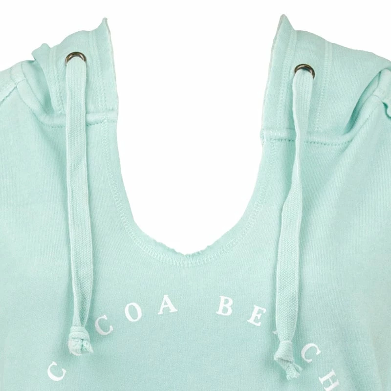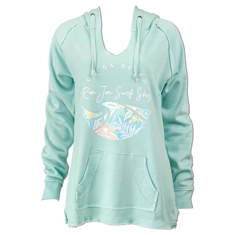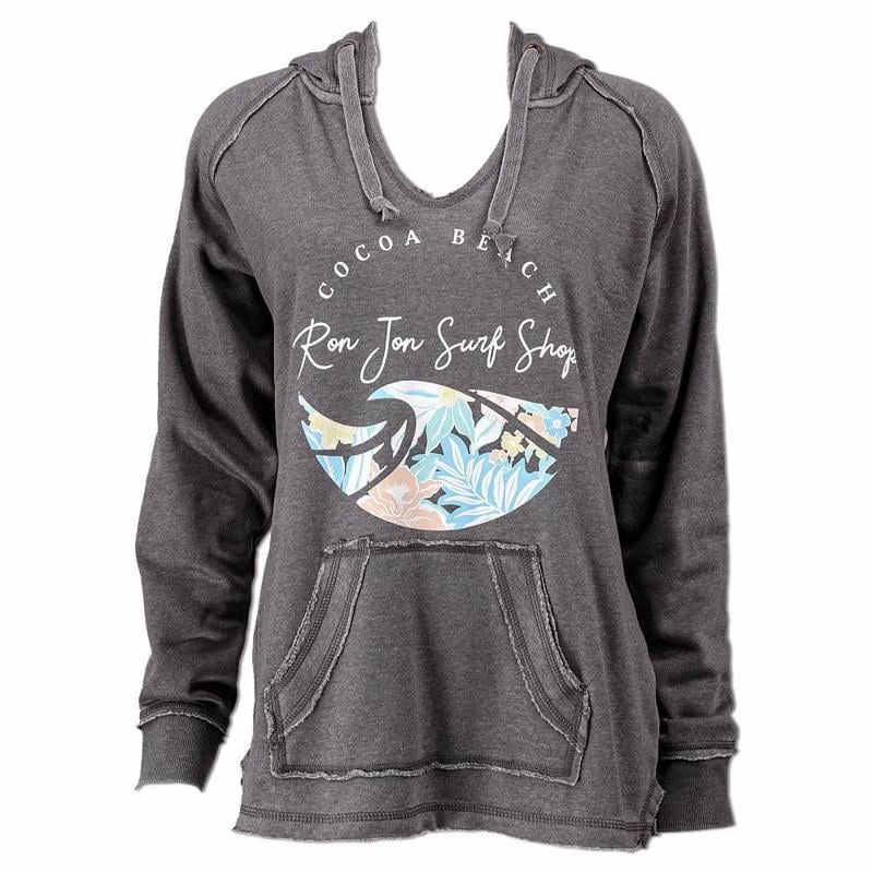A pastel colored floral screen print graphic adorns the front of this Ron Jon Juniors Tropical Wave Hooded Sweatshirt featuring Cocoa Beach lettering.