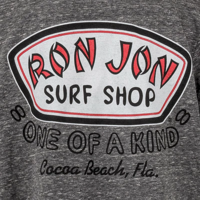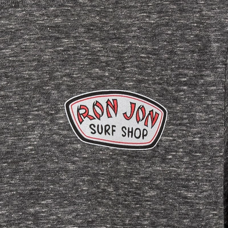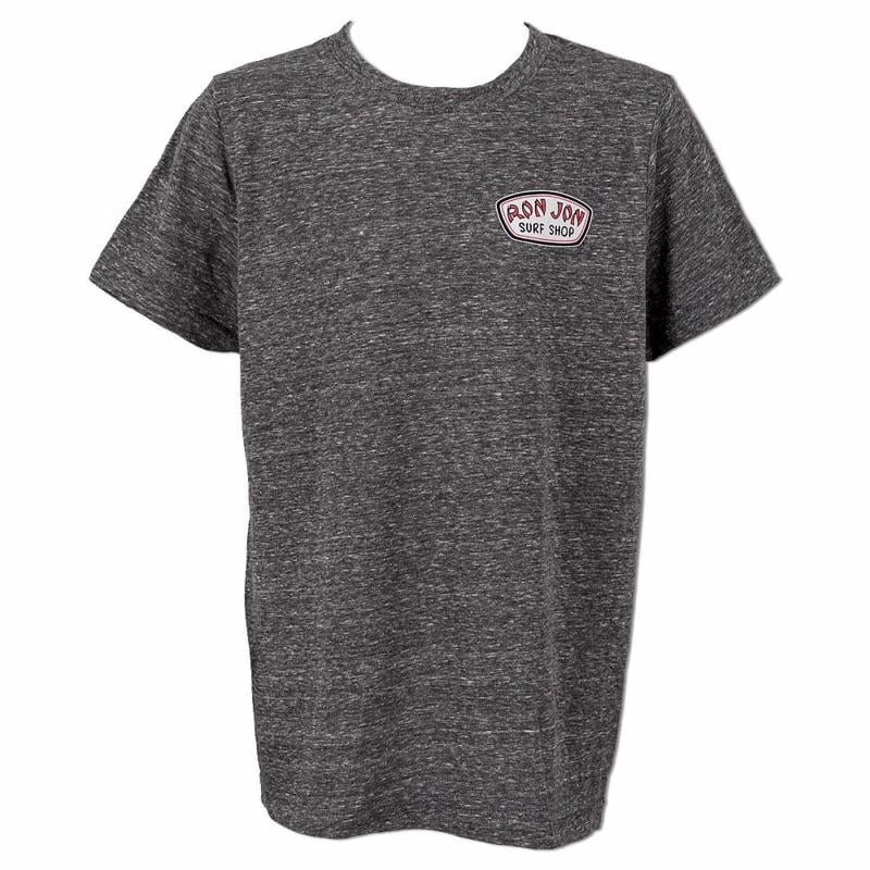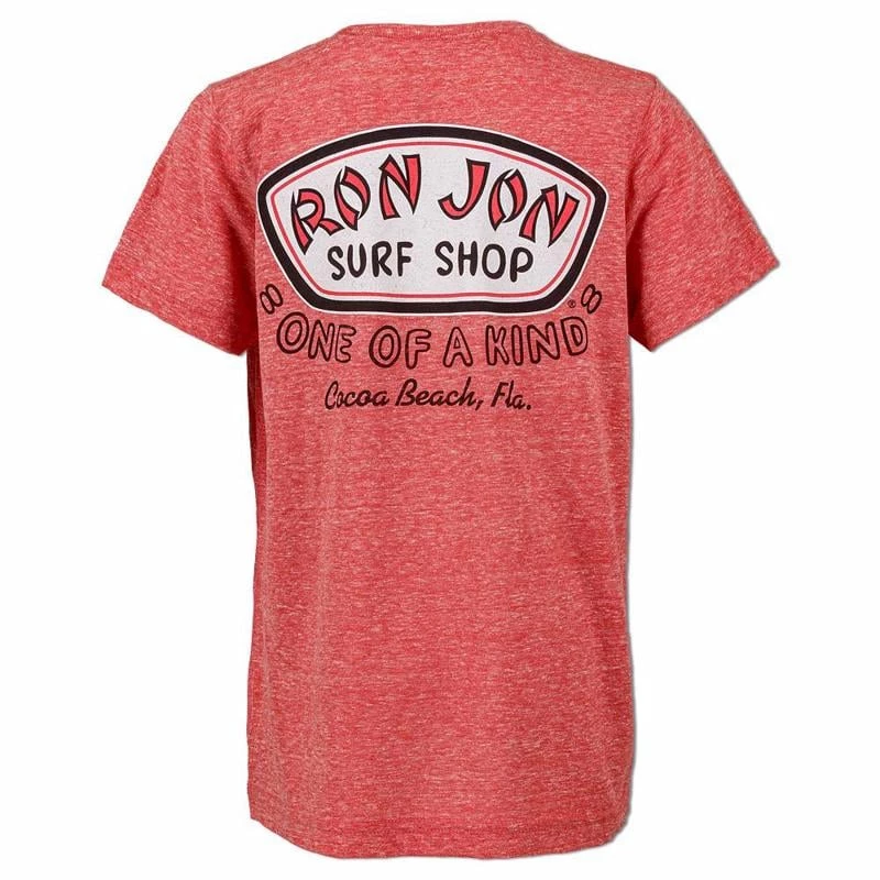Ron Jon Kids Just A Badge Tee featured a heathered looking fabric blend, visible stitching down the side seams and the world famous Ron Jon Surf Shop Badge logo.