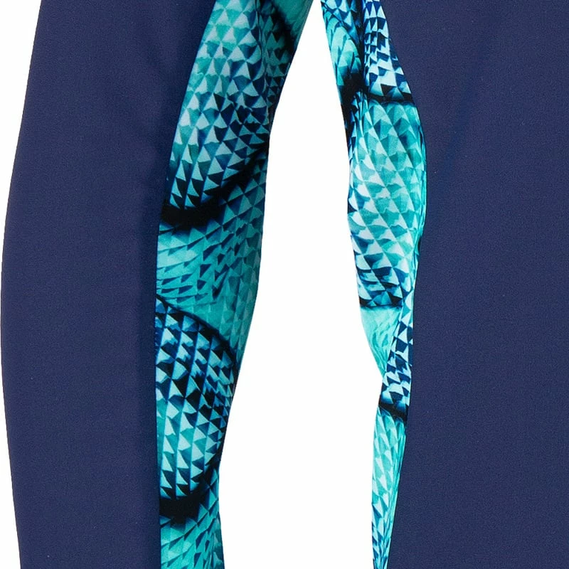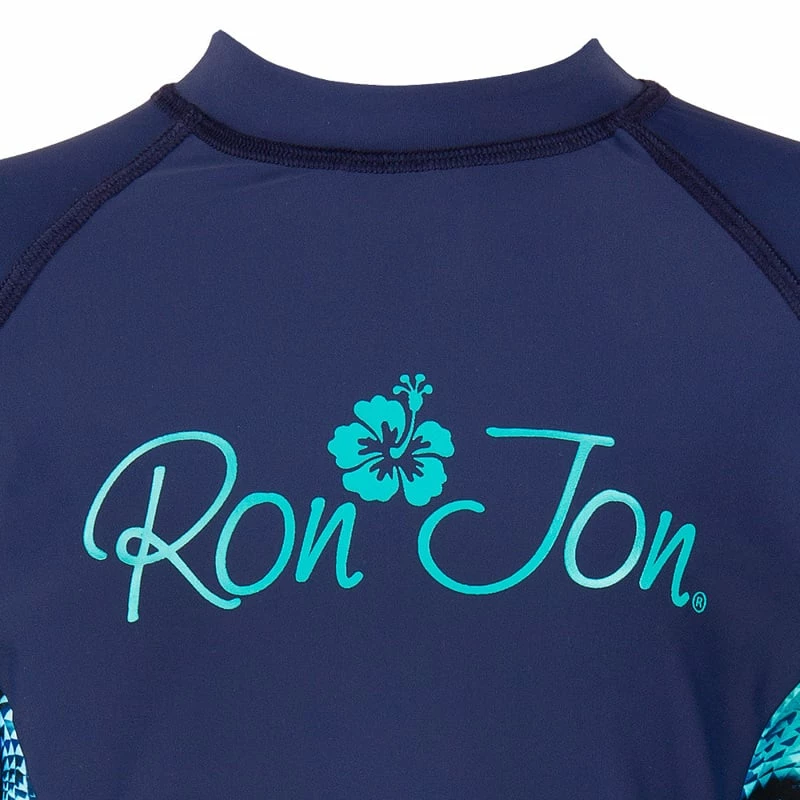 The Ron Jon Kids Navy Long Sleeve Rash Guard protects your little one from harmful UVA & UVB rays on those fun days in the sun. It features a hibiscus logo front screen print and mermaid scale side panels.