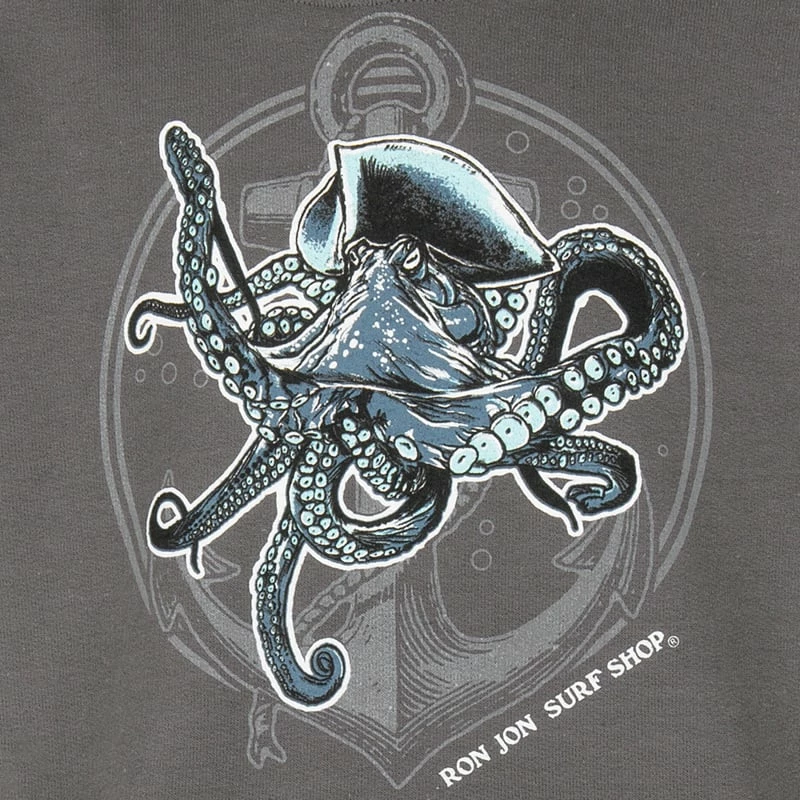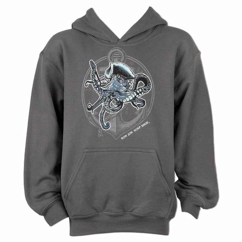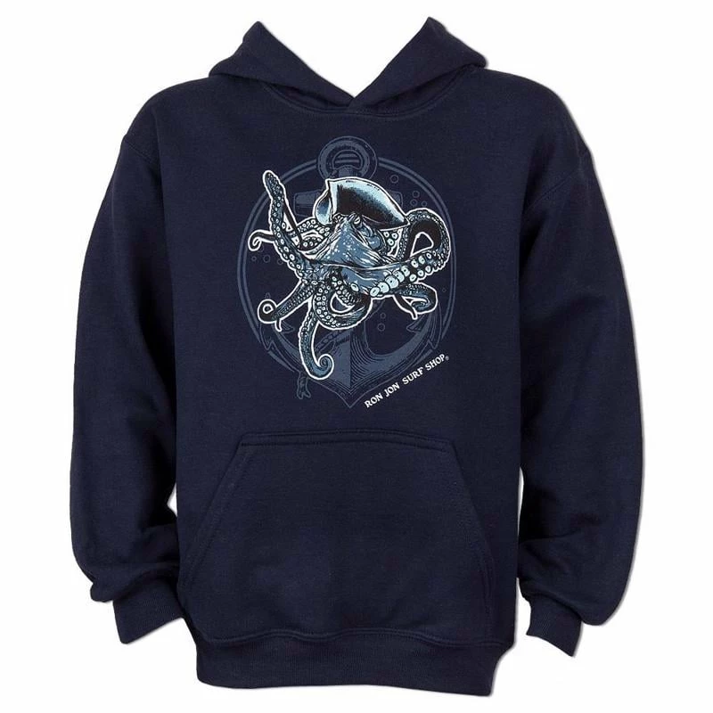 If you have a pirate enthused child, then the Ron Jon Kids Octo Pirate Fleece Pullover Hoodie is a great choice for them! This hoodie features a graphic of an octopus wearing a classic pirate hat with an anchor behind it.Â