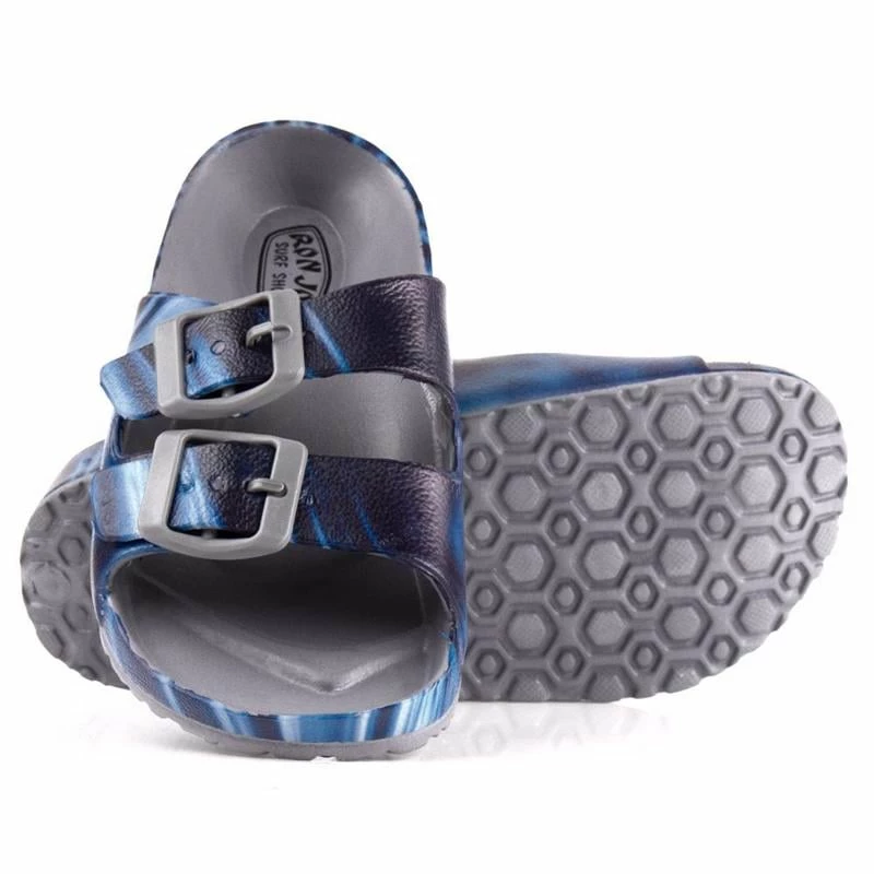 The Ron Jon Kids Tate Blue Multi Sandal features two adjustable straps, and a conforming footbed, perfect for walking on the beach.