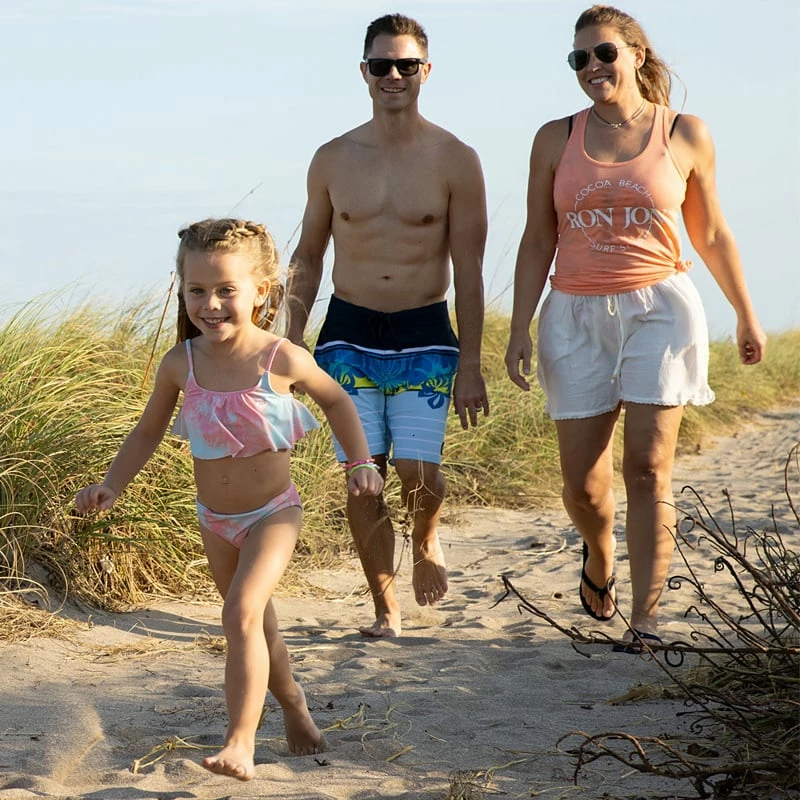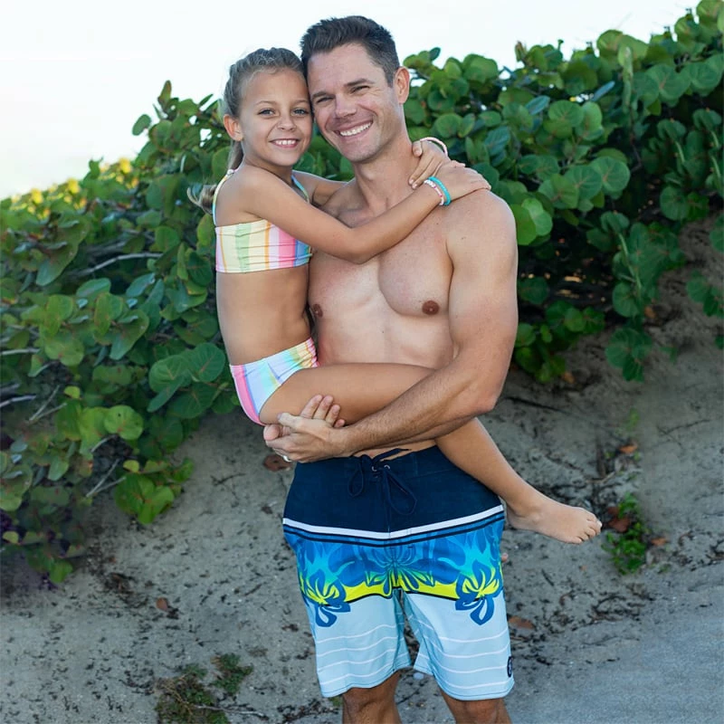 The Ron Jon Light Blue Glister Boardshort features a bright-colored floral print and fabric that provides UV protection, fade resistance to keep colors vibrant, and quick-drying material so the ride home after the beach is comfortable!
