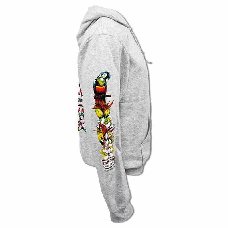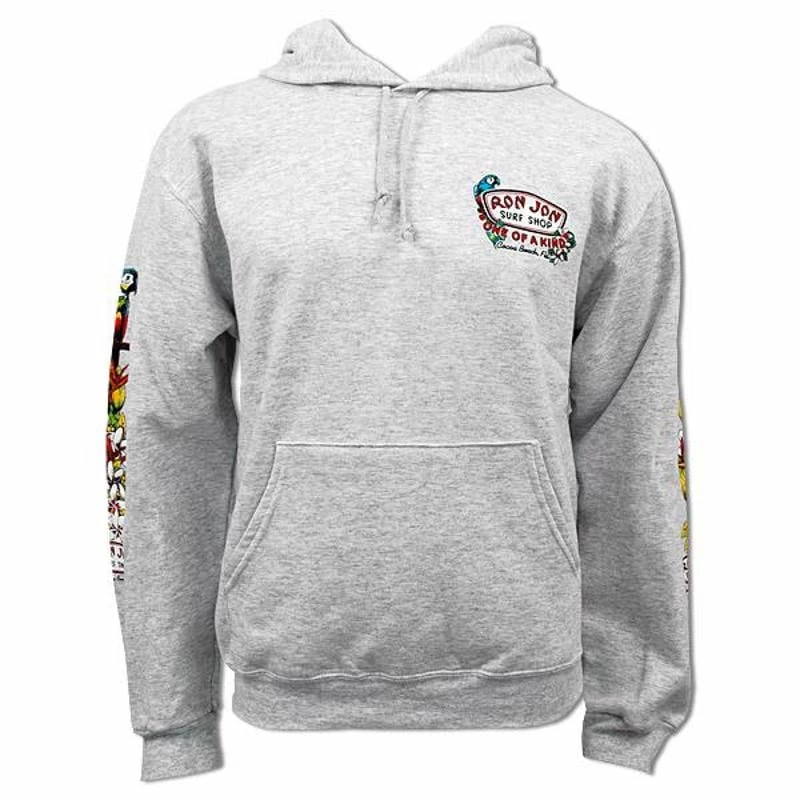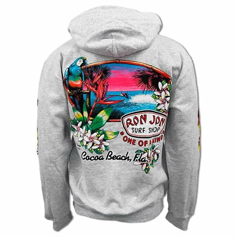 A longstanding customer favorite. The Paradise Surf Hooded pullover sweatshirt from Ron Jon Surf Shop features a large tropical parrot and surf scene with floral accents and the world famous Ron Jon Badge logo.