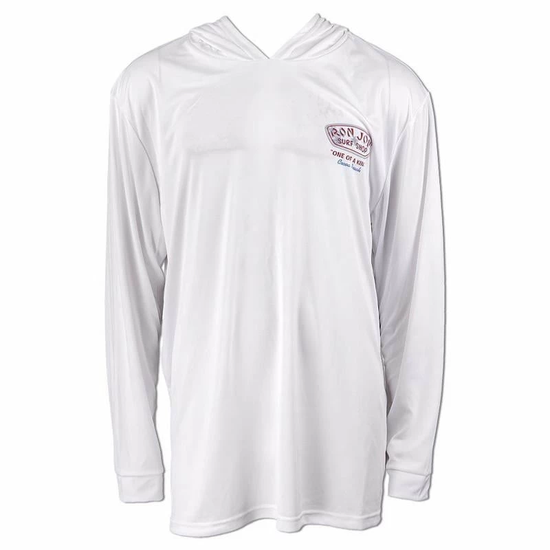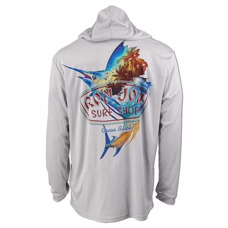 Take to the seas in this UPF 50+ rated long sleeve hooded shirt from Ron Jon Surf Shop. Whether you are battling a big catch, like the sailfish in the shirt’s graphic, or just running errands, you are sure to appreciate the extra protection from the sun’s rays that this shirt offers.