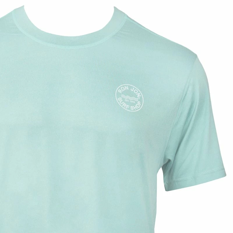 The Ron Jon Sea Foam Sun Shirt features a material that quickly dries, moisture wicks, breathability, and UV protection, making it a great choice for a day out in the sun.