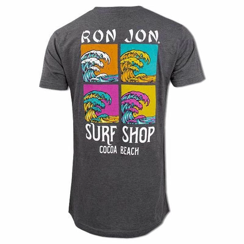 The Pop Art movement is one of the largest art movements in history, and its styles are still used in art pieces today! The Ron Jon Square Wave Tee features a large graphic inspired by one of the classic Pop Art styles on the back of the tee, of four squares with different vibrantly colored identical waves in each square.