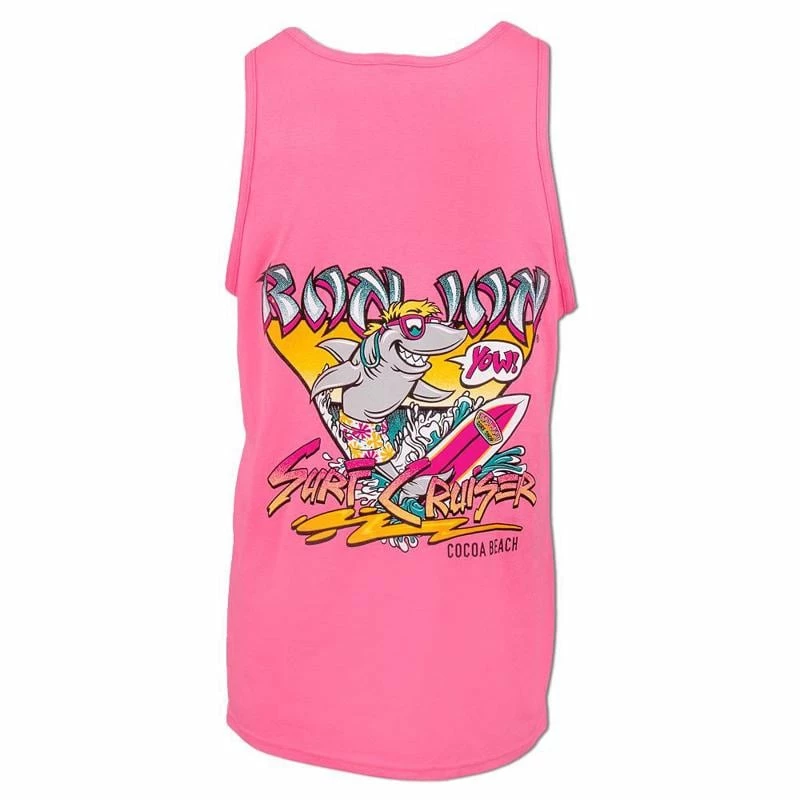 Surf Cruiser is having a blast surfing as he exclaims “Yow!” in the graphic of this tank top.