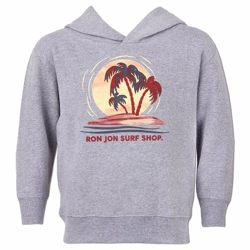 Keep your little one warm this fall with the Ron Jon Toddler Island Time Pullover Hoodie. This hoodie features two side pockets, a hood, and a cute graphic of the sun setting behind silhouetted palm trees.