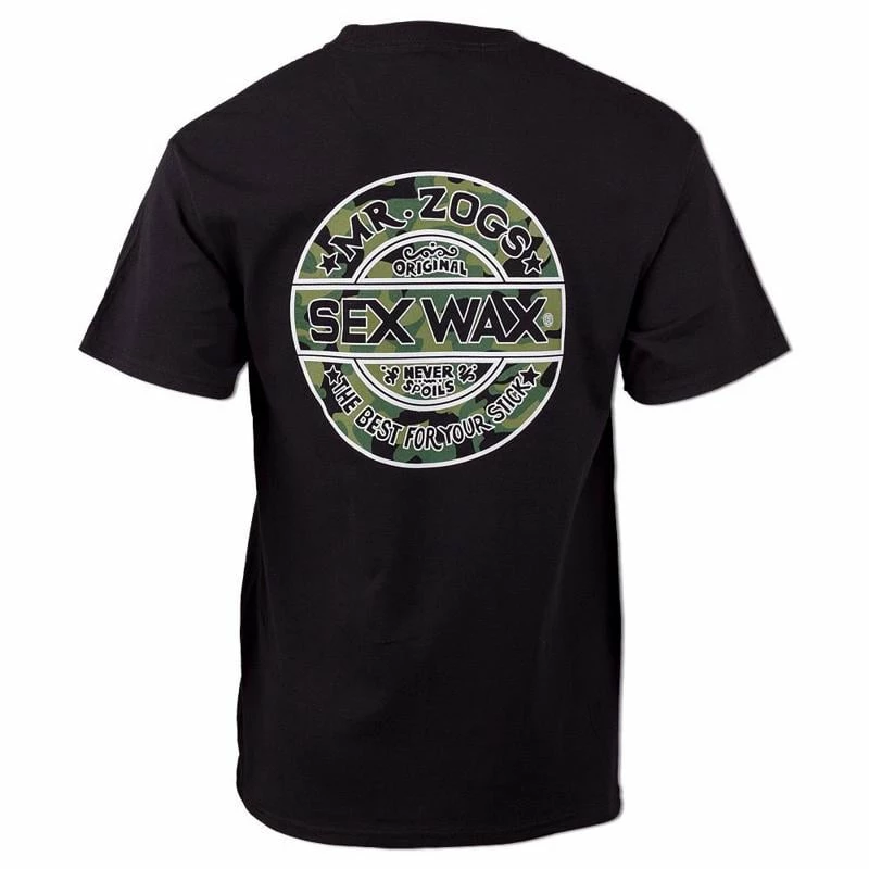 You could possibly go into stealth mode with this short sleeve t-shirt from Sex Wax. Features the famous Mr. Zogs Sex Wax logo with a woodland camouflage background. Large version on the back, with a smaller version on the front.