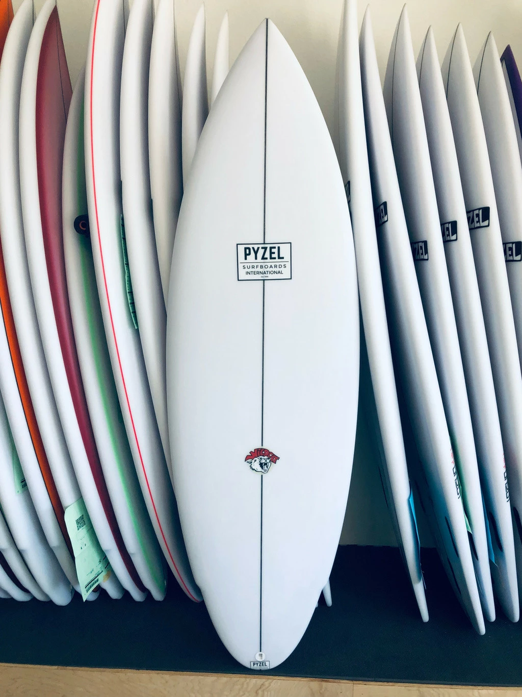 Pyzel board agents recommend rocking the Bobcat Fins, a collaboration from Jon Pyzel & Bob Hurley in your Wildcat.